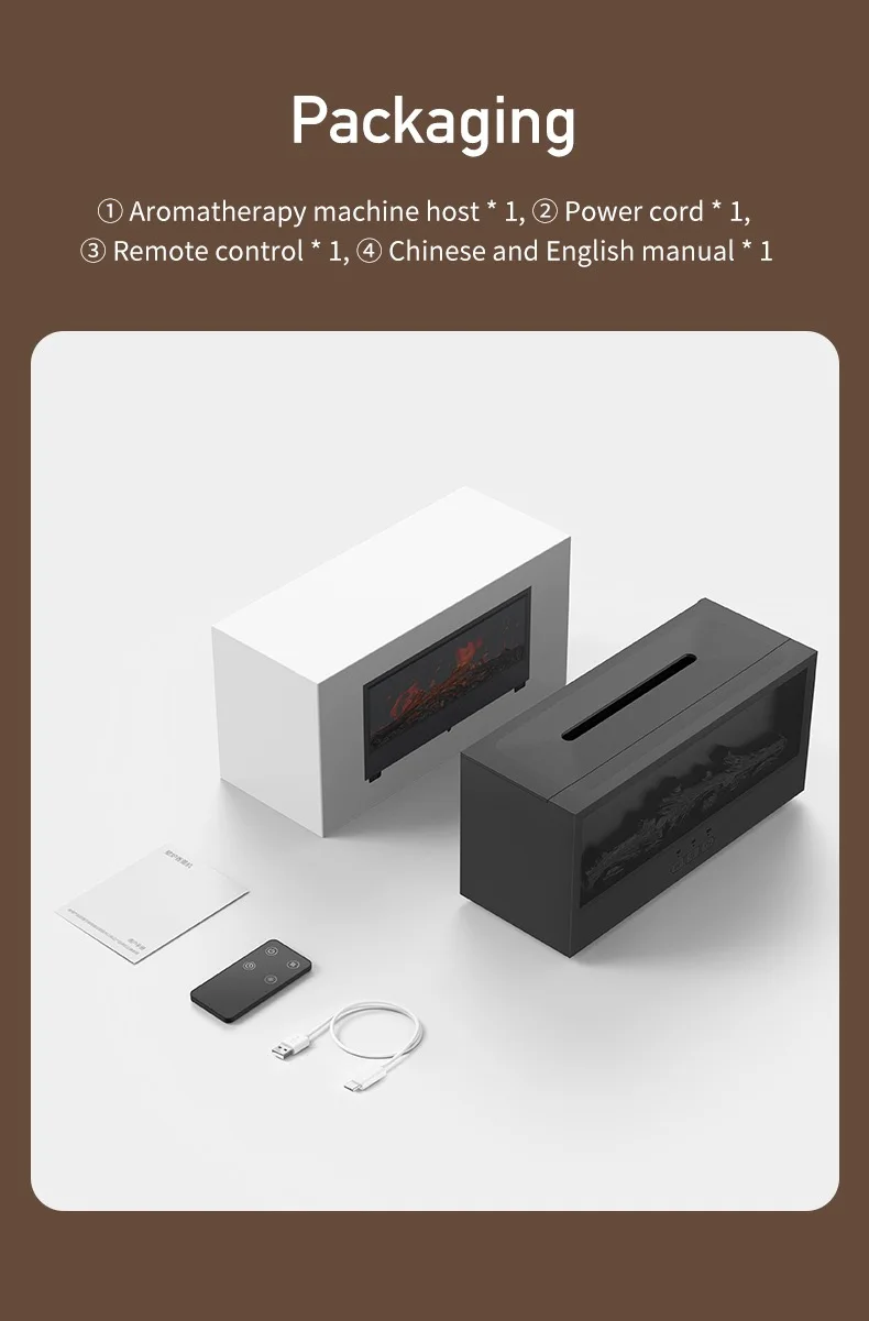 3D Simulated Charcoal Flame Aroma Diffuser, Ambient Light for Home and Office Desks, Air Humidifier, Essential Oil Dispenser